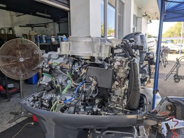 The motor has been previously used and may show normal cosmetic wear consistent with age and prior operation. Buyers should review all product images and specifications carefully to confirm compatibility with their boat and intended use.